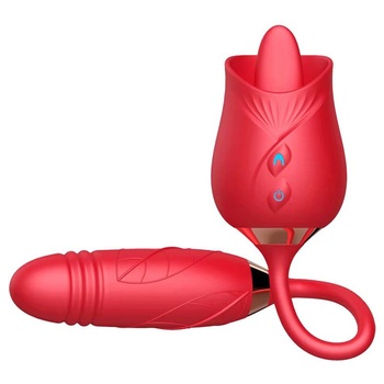 Vibrador con forma de rosa para mujeres adultas, consolador para lamer la lengua roja, 10 pulgadas